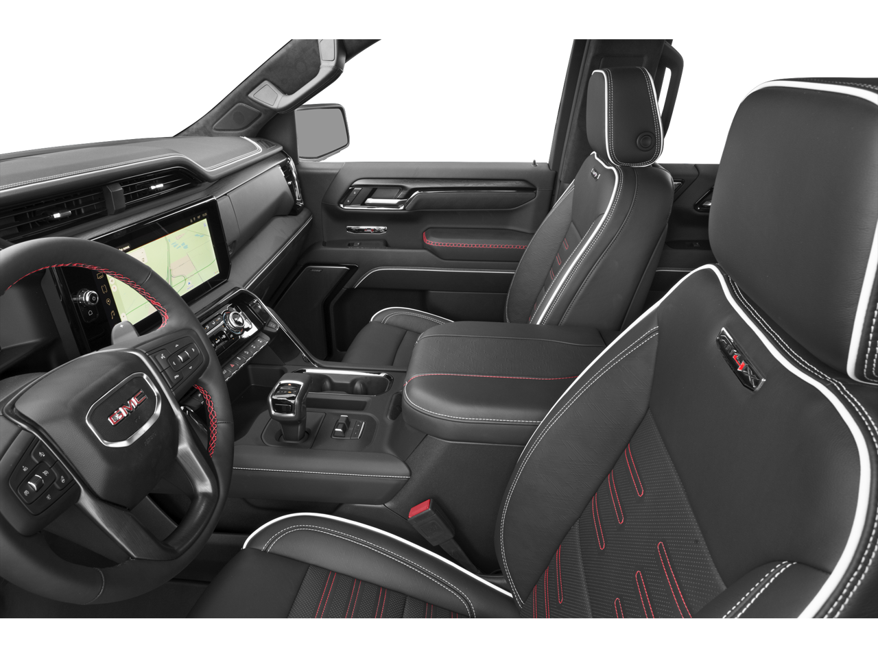 Summit White 2025 GMC Sierra 1500 AT4X 4WD 10-Speed Automatic EcoTec3 6.2L V8 10-Speed Automatic, 4WD, Obsidian Rush Leather.