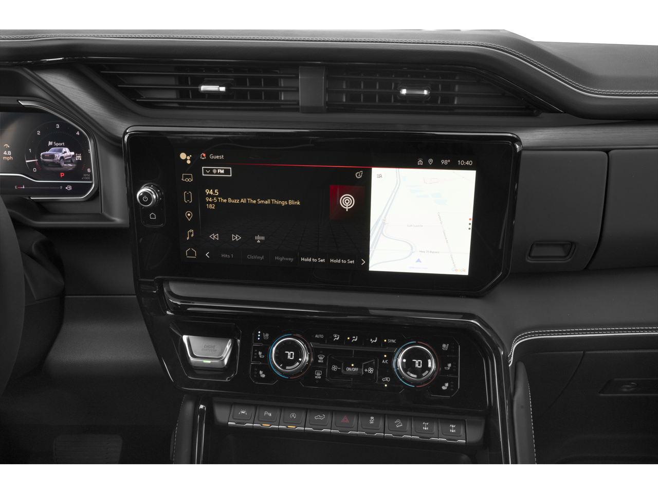 • Audio System, 13.4" diagonal Premium GMC Infotainment System with Google built in apps such as navigation and voice assistance, includes color touch-screen, multi-touch display, AM/FM stereo Bluetooth® streaming audio for music and most phones; featuring wireless Android Auto and Apple CarPlay capability for compatible phones