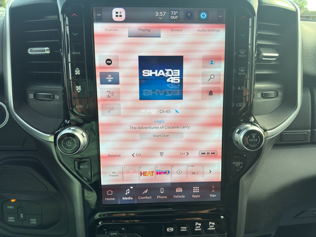 Quick Order Package 24Z Big Horn. Big Horn Level 1 Plus Equipment Group: Google Android Auto; SiriusXM Radio Service; For Details. Visit DriveUconnect.com; For More Info. Call 800-643-2112; Integrated Voice Command with Bluetooth®; Emergency Vehicle Alert System (EVAS); 12" Touchscreen Display; Premium Cloth 40/20/40 Bench Seat; Glove Box Lamp; Auto Power-Folding Mirrors; Footwell Courtesy Lamp; Anti-Spin Differential Rear Axle; Mirror Running Lights; MOPAR Deployable Bed Step; Alexa Built-In; Apple CarPlay; Power-Adjustable Convex Aux Mirrors; Forward and Reverse Utility Lights; Locking Lower Glove Box; Remote Start System; 9 Alpine Speakers with Subwoofer; Disassociated Touchscreen Display; Dual Glove Boxes; 2nd Row in Floor Storage Bins; Rear View Auto Dim Mirror; Rear Dome with On/off Switch Lamp; LED Bed Lighting; Connectivity - US/Canada; GPS Navigation; 4G LTE Wi-Fi Hot Spot; GPS Antenna Input; Exterior Mirrors with Heating Element; SiriusXM with 360L; Global Telematics Box Module; Connected Travel and Traffic Services; Foam Bottle Insert (door Trim Panel); Black Exterior Mirrors; Big Horn Instrument Panel Badge; Off-Road Info Pages; Selectable Tire Fill Alert; Trailer Tow Pages; HD Radio; Uconnect 5 Navigation with 12.0" Display Radio; Power Heated Folding Telescopic Mirrors; Exterior Mirrors with Supplemental Signals; Steering Wheel Mounted Audio Controls; Exterior Mirrors Courtesy Lamps; Air Conditioning ATC with Dual Zone Control; MOPAR Spray in Bedliner; Power Adjust Mirrors; Luxury Steering Wheel; Power Telescoping Mirrors. 20" X 8.0" Polished Aluminum Wheels. Premium Cloth 40/20/40 Bench Seat. Chrome Flat Wheel-To-wheel Side Steps. 5th Wheel/gooseneck Towing Prep Group. Anti-Spin Differential Rear Axle. Remote Start System. MOPAR Front and Rear Rubber Floor Mats. Rear Wheelhouse Liners. Power 2-Way Driver Lumbar Adjust. Clearance Lamps. Transfer Case Skid Plate Shield. **Equipment listed is based on original vehicle build and subject to change. Please confirm the accuracy of the included equipment by calling the dealer prior to purchase.**