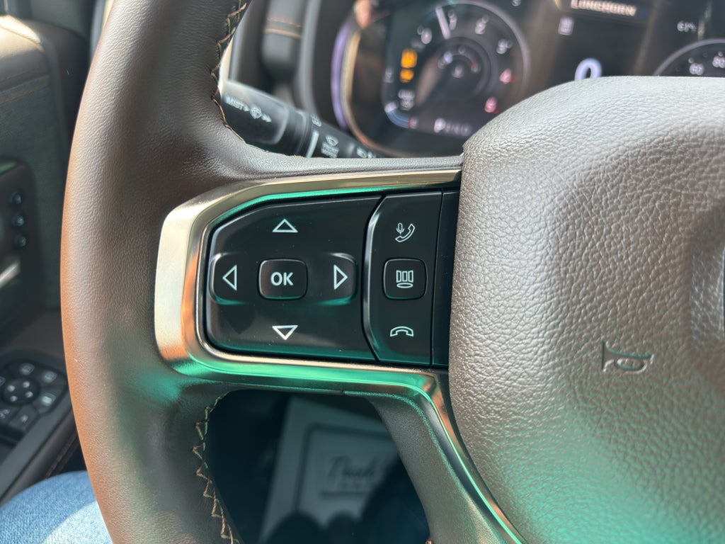 Quick Order Package 24K Longhorn: Luxury Front and Rear Floor Mats; Warm Chrome Key Fob; Longhorn Instrument Cluster Theme 3; Premium Door Trim Panel; Premium Filigree Leather Seats; I/P Aluminum Litho Bezels with Real Wood #1; Longhorn Badge. Longhorn Level 1 Equipment Group: Active Lane Management System; MOPAR Spray in Bedliner; Center Stop Lamp with Cargo View Camera; Surround View Camera System; Drowsy Driver Detection; LED Bed Lighting; Power Deployable Running Boards; Traffic Sign Recognition; Trailer Tire Pressure Monitoring System; Trailer Reverse Guidance; Digital Rearview Mirror; Adaptive Steering System. Chrome Bumper Package: Bright Rear Bumper; Bright Front Bumper. Auto Level Rear Air Suspension. Diamond Black Crystal PC. Instrument Panel Mounted Auxiliary Switches. 5th Wheel/gooseneck Towing Prep Group. Clearance Lamps. Transfer Case Skid Plate Shield. **Equipment listed is based on original vehicle build and subject to change. Please confirm the accuracy of the included equipment by calling the dealer prior to purchase.**