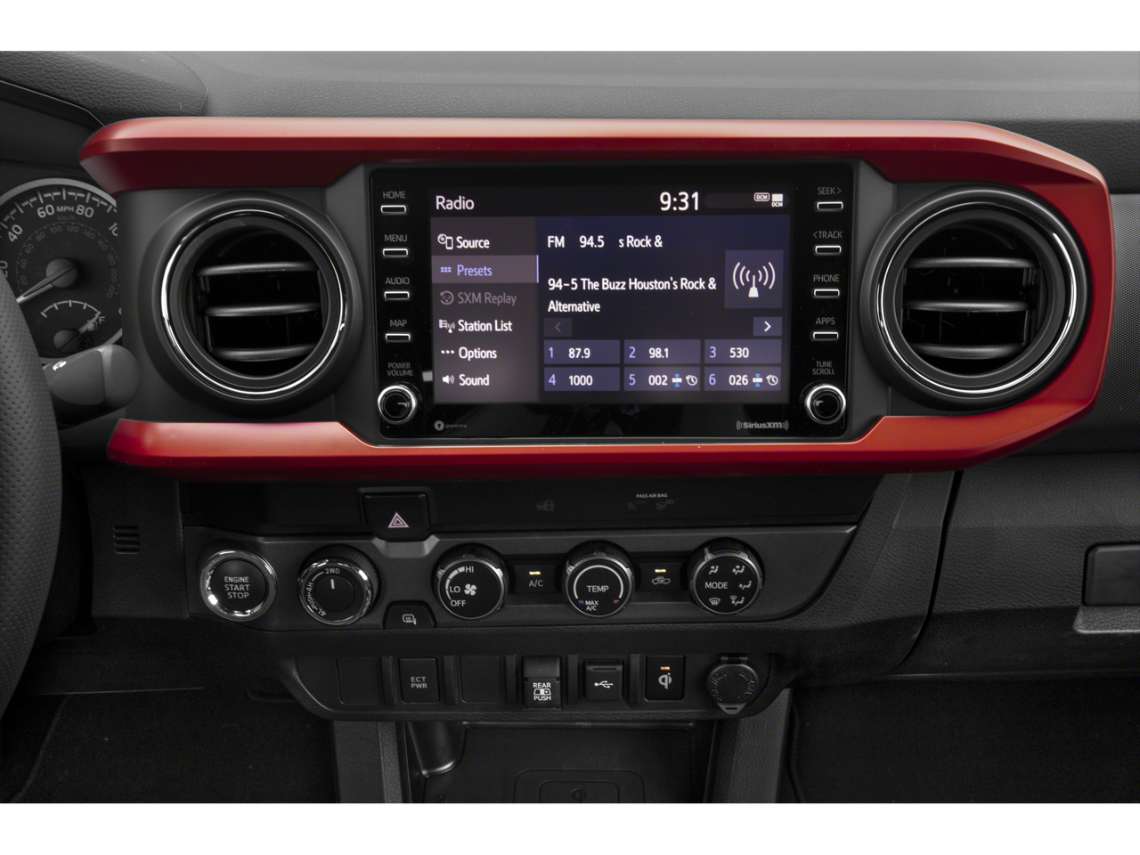 TRD Sport Package: 17" Machined Alloy Wheels; Qi-Compatible Wireless Charger; 120V/400W Deck Mounted AC Power; Power Sliding Rear Window with Privacy Glass; Front Door Smart Key System with Push Button Start; Color-Keyed Overfenders; Engine Immobilizer; P265/65R17 All-Season Tires; Front Seats; Fabric Seat Trim. LED Headlights with Black Bezel LED Fog Lights. Carpet Floor Mats and Door Sill Protectors. Mudguards. **Equipment listed is based on original vehicle build and subject to change. Please confirm the accuracy of the included equipment by calling the dealer prior to purchase.**