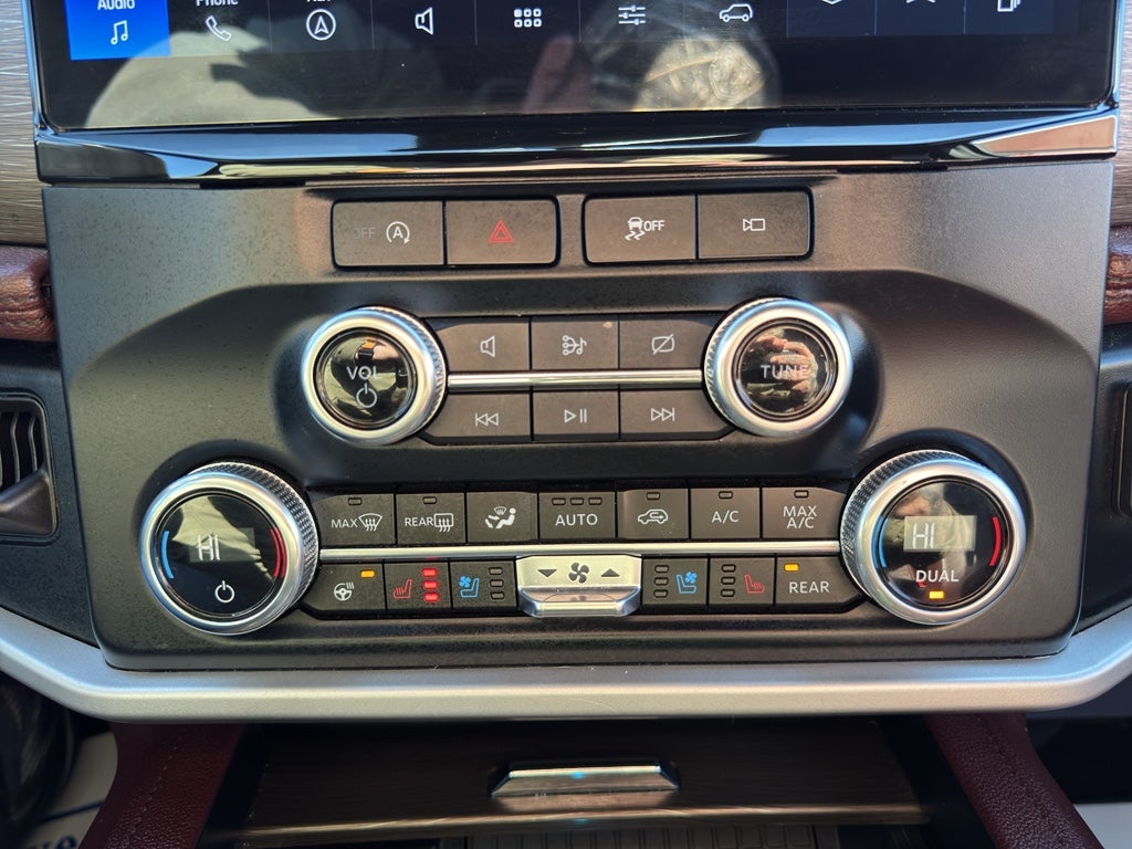 Equipment Group 302A High Package: Heated and Ventilated Leather Front Captain's Chairs; 22" 12-Spoke Polished Aluminum Wheels; 7. 450 lbs GVWR; B&O Sound System by Bang and Olufsen; Ebony Black Mesh Grille; Power-Folding Sideview Mirrors with Autofold; Magnetic-Painted Power Deployable Running Boards; 10-Speed Automatic Transmission with SelectShift; Panoramic Vista Roof; 3.5L EcoBoost V6 Engine; Heavy-Duty Independent Suspension; P285/45R22 110H AS BSW Tires; 3.31 Axle Ratio. Ford Co-Pilot360 Assist 2.0: Connected Navigation; Reverse Brake Assist; 360-Degree Camera with Split View. Panoramic Vista Roof. 2nd Row Power-Folding 40/20/40 Leather Bench Seat. Mahogany. Advanced Cargo Manager. **Equipment listed is based on original vehicle build and subject to change. Please confirm the accuracy of the included equipment by calling the dealer prior to purchase.**