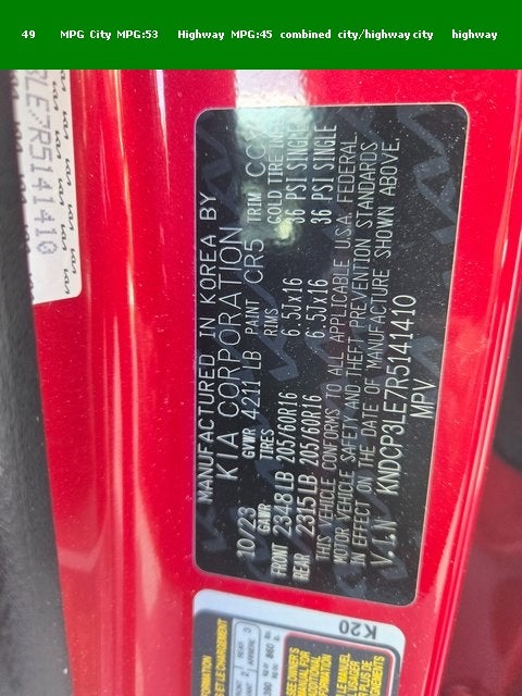 - Fuel Economy Est-Combined (MPG): 53
